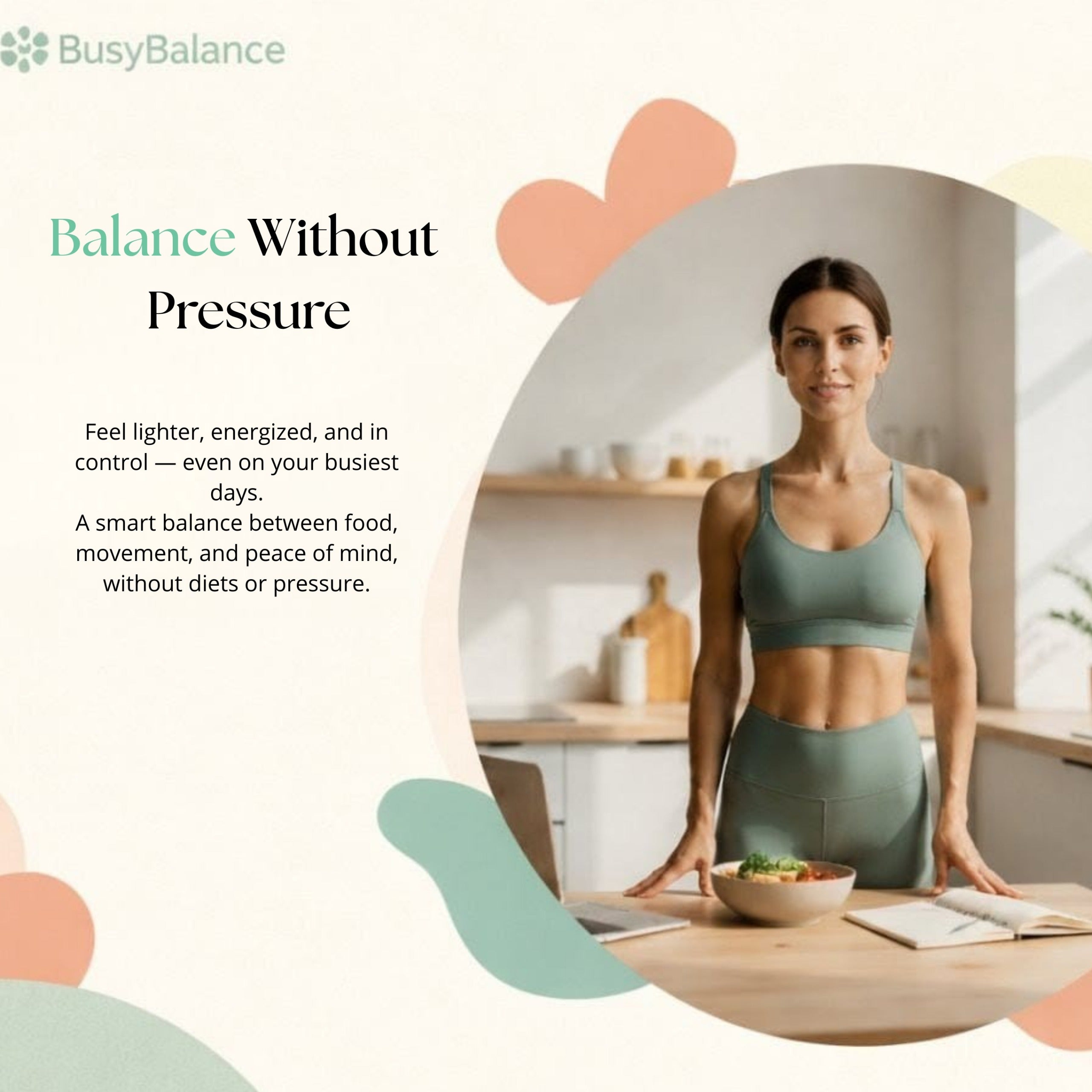 BusyBalance is a simple system designed for busy women to lose weight without pressure or deprivation.